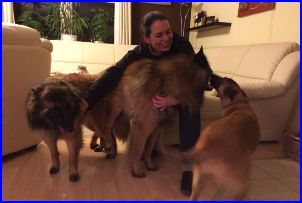 Das allerletzte Foto, wir lassen einen sehr traurigen Digger zurück, am liebsten hätte ich ihn mitgenommen. Ich habe mich total verliebt in diesen lieben Kuschelbär! Kathrin, Du hast einen ganz besonderen Rüden! Ich hoffe sehr, dass es einer erfolgreiche Liebeswoche war und wir süße kleine Digger - Farouche - Babys bekommen werden! In drei Wochen werden wir eine Ultraschalluntersuchung machen lassen, dann wissen wir ob die Verpaarung von Digger und Farouche erfolgreich war. Das Ergebnis werde ich dann hier bekannt geben.