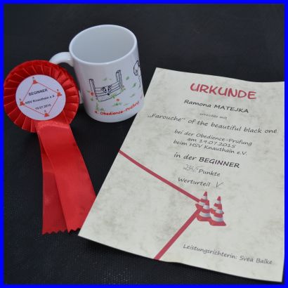 Der zweite Platz von den Beginner Hunden im Obedience, Berwertung "Vorzüglich", und damit qualifiziert für die Klasse 1! Ich bin so stolz auf mein kleines Ruschelkind!