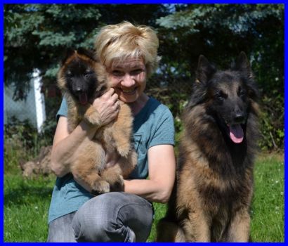 Anuk wohnt bei Heike in Haltern am See. Auf dem Foto unten sind Heike, Anuk und Cool Tiger, ein Tervuerenrüde aus meinem C-Wurf, der Onkel der kleinen Anuk! Ich freue mich unsagbar sehr, dass Anuk bei Heike und ihrer Familie lebt. Wir kennen uns nun schon sieben Jahre, und in dieser Zeit hat sich eine richtige Freundschaft entwickelt. Wenn sich die kleine süße Maus weiter so gut entwickelt, alle Voraussetzungen für die Zuchtzulassung erfüllt, wird unser großer Traum wahr und Anuk wird die erste Zuchthündin in Heikes zukünftigen Zwinger! Ich drücke uns alle Daumen und Hundepfötchen, aber jetzt wird Heike erst einmal die verrückte Welpenzeit genießen, und ich freue mich aus der Ferne mit ihr!
