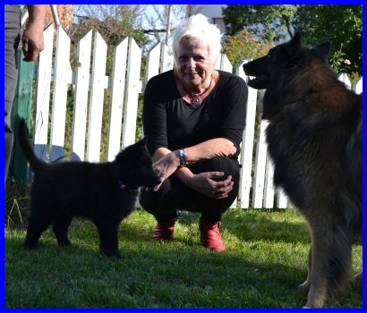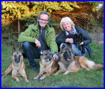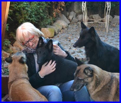 Kylie wohnt in Geroldsgrün bei Rotraut und ihrer Familie. Kylie werden wir auch auf Ausstellungen wieder sehen. Ihr neuer Kumpel ist Shadow, ein ausgebildeter Blindenhund, der aber sicher mit Kylie seine Dienst freie Zeit mit ausgelassenem Toben verbringen wird. Viel Spaß mit den zwei liebenswerten belgischen Chaoten. |