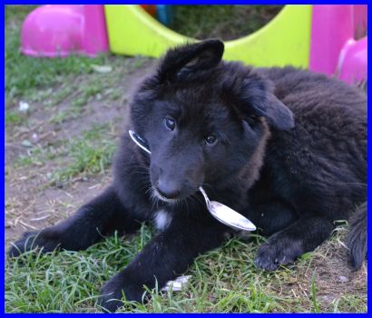 Keoma wohnt bei Familie Huber in Schopfheim am Bodensee. Er soll ausgestellt und später als Deckrüde angekört werden. Sein Herrchen möchte mit ihm die BH-Prüfung ablegen und dann für die IPO trainieren. Warten wir es ab, ich bin gespannt! Aber es gibt ja auch noch andere Sportarten, es wird sich sicher für Beide etwas finden. Viel Spaß mit dem starken kleinen Mann!