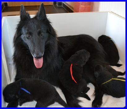 Am 22.05.2014 hat YooPee ihre ersten Welpen zur Welt gebracht. Sie war eine sehr vorbildliche, fürsorgliche, liebe Mama, die aber auch sehr streng und konsequent ihre Babys erzogen hat.