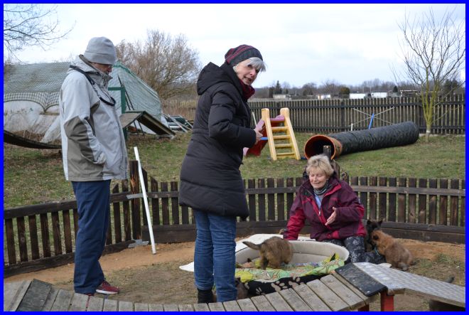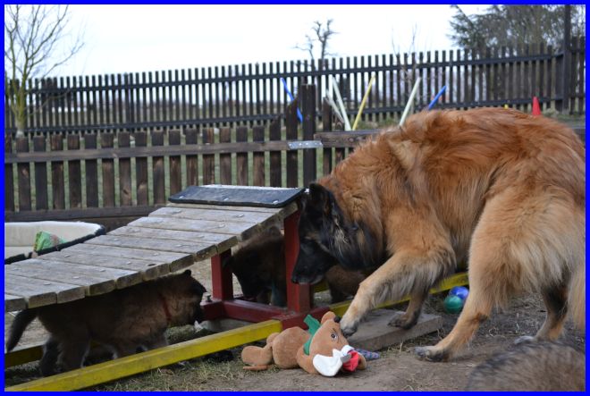 Tante YooPee kommt auch ab und zu und kontrolliert alles im Welpengarten.