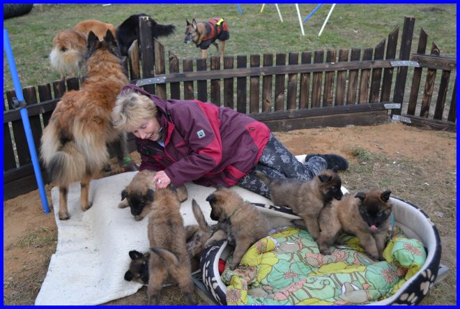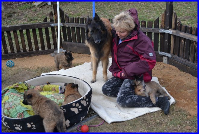 Das dritte "M", meine Freundin Marion, ist auch eine gute Freundin von Monika, so wurde aus dem Welpen gucken auch noch ein richtig schöner "Weibernachmittag"! Die Welpen sind 5 Wochen alt.