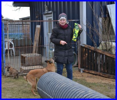 Moni strahlt und ihre Mokka ist so eine liebe Hündin, sie wird sicherlich eine tolle Ersatzmama für die kleine Lizzy! Meine Hunde vertrauten Mokka total, sie durfte im Welpengarten laufen, mit den Babys spielen, alles war gut. |