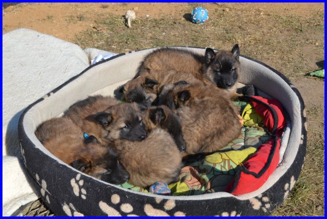 In der Sonne schlafen, eng an die Geschwister gekuschelt, was gibt es schöneres für Welpen.