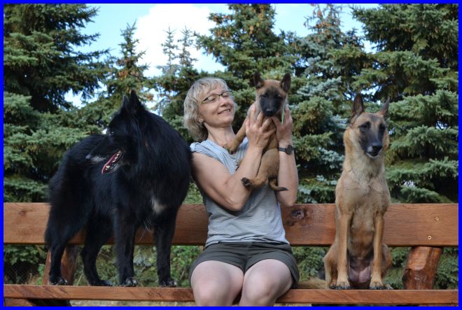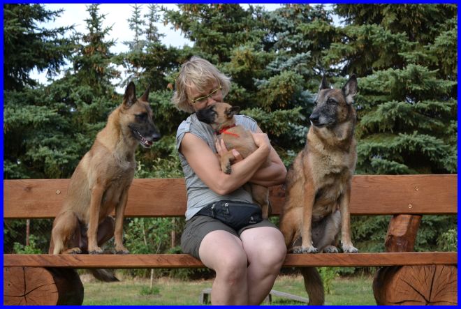 Maddox mit seiner Mama Akela rechts und links meine Grönihündin YooPee.