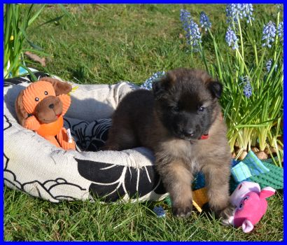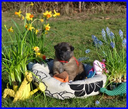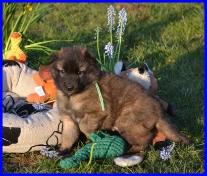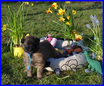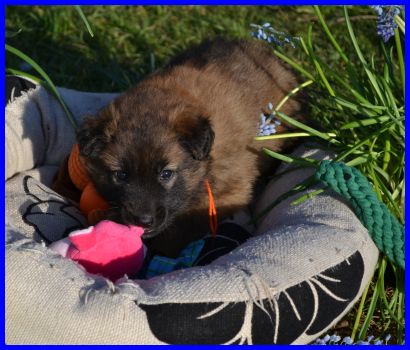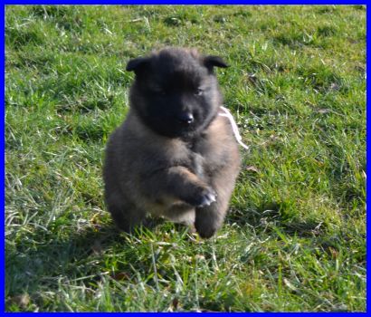 Der erste Rüde, Mr. Blau, wiegt 2410g, er ist wie Frl. Rot sehr unternehmungslustig, erkundet alles ganz schnell. |