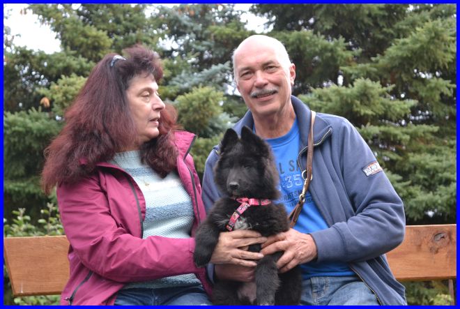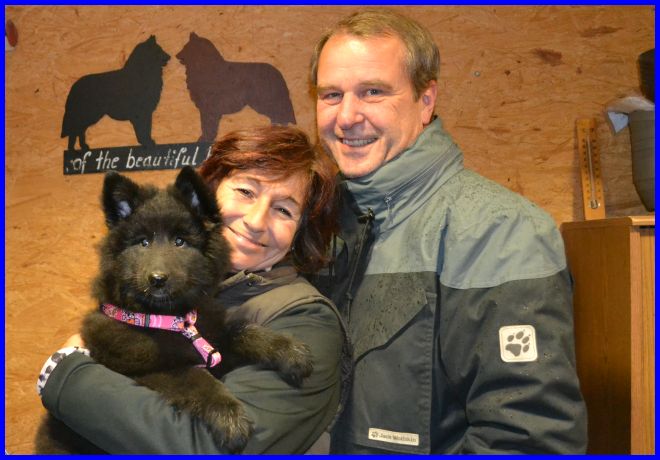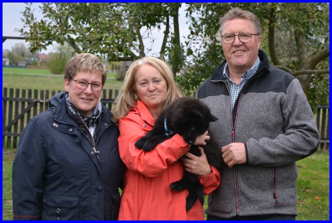Heike und Bernd mit Nando. Ich wünsche Euch alles Gute, eine wunderschöne Welpenzeit und freue mich schon sehr, Euch und Nando auf einer Ausstellung wieder zu sehen.