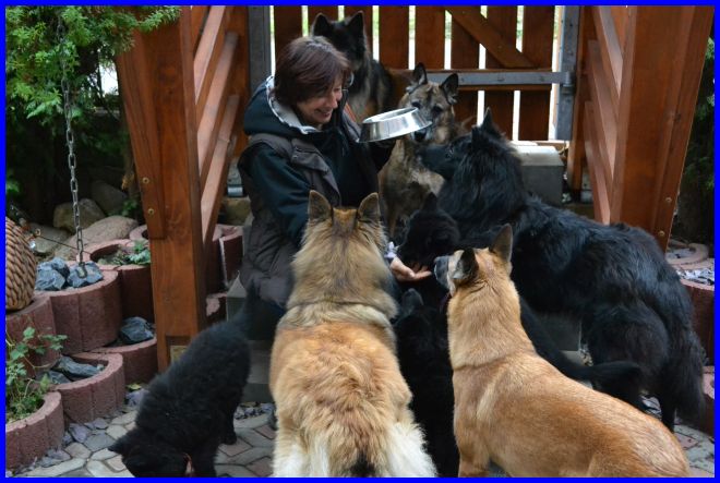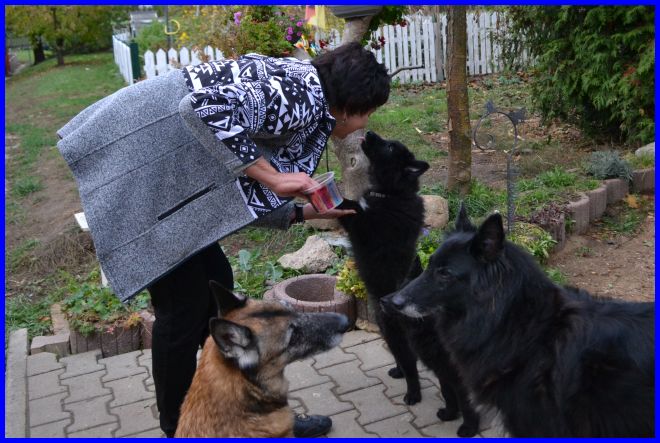 Super Leckerlis für alle! Sogar die Welpen stellen sich schon mit an :-) |