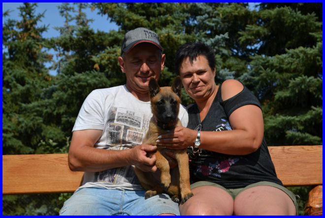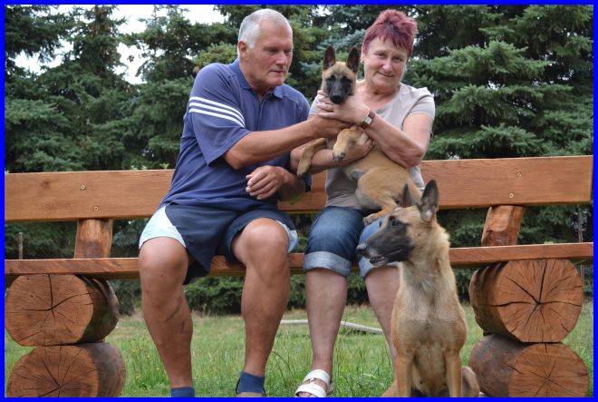 Thomas und Andrea mit Monique. Ich freue mich sehr dass Ihr meine kleine Monique in Eure Familie, in Euer Rudel genommen habt. Ich drücke ganz doll die Daumen, dass unsere Wünsche wahr werden und hier auf dem Bild eine zukünftige Zuchthündin zu sehen ist. Aber bis dahin ist noch ein weiter Weg, genießt erst einmal die verrückte Welpenzeit mit unserer hübschen Maus! Ich wünsche Euch und Monique alles Gute!