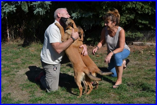 Fabian und Django. Auch Django hat Fabian wieder erkannt, ein gutes Gefühl, da lässt man die Welpen viel leichter in die neuen Familien gehen. |