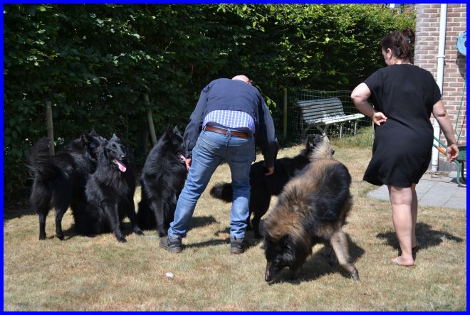 Er lebt mit seiner Familie und vier weiteren belgischen Schäferhunden als normaler Familienhund, da muss natürlich auch ein richtiges Familienbild gemacht werden. Patrick bemüht sich und Peggy überwacht das ganz genau, perfekte Arbeitsaufteilung :-)
