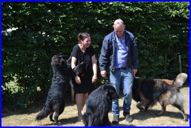 Kwando ist ein sehr freundlicher, super gut sozialisierter Rüde, der mich mit einer Freude begrüßte, als wenn wir uns schon ewig lange kennen würden. Damit hat er mir in den ersten Sekunden mein Herz gestohlen, ich habe mich total verliebt in diesen temperamentvollen Burschen. Und mit genauso viel Temperament wollte dieser kleiner Draufgänger YooPee im Sturm erobern. Aber nicht mit meiner YooPee, das ging ihr dann doch ein bisschen zu schnell! Patrick und Peggy de Houwer sind die glücklichen und stolzen Besitzer von Kwando.