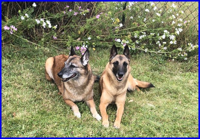 Akela mit ihrer Mama Avanti, die im November 13 Jahre alt wird. Das Foto ist vom 12.07.2019 der 40. Tag der Tragezeit. Akela genießt den Urlaub.