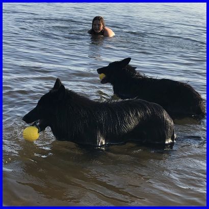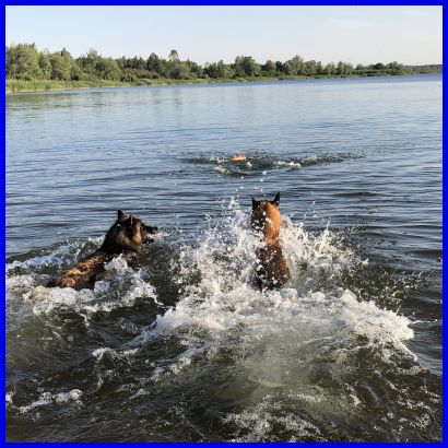 Avanti liebt es auch zu schwimmen, aber sie muss nicht mehr die Erste sein, sie geht es gemütlicher an, darf sie auch mit 12 Jahren!