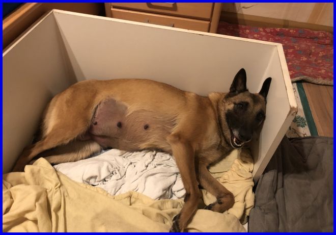 Es ist der 02.08.2019 am Nachmittag, in der Nacht kamen die Babys. Hier ist Akela noch total entspannt.