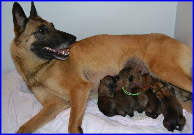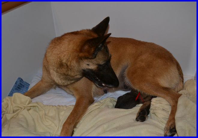 Avanti hat fast die ganze Geburt verschlafen :-) Es ist vollbracht, sechs zuckersüße Welpen stehen in den Startlöchern des Lebens!!!
