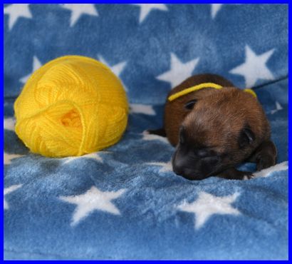 Der erste Rüde, etwas heller als seine Schwestern mit dem zweit schwersten Gewicht.