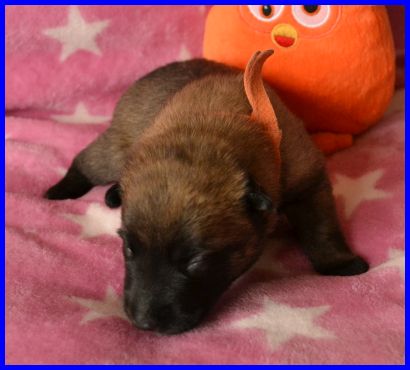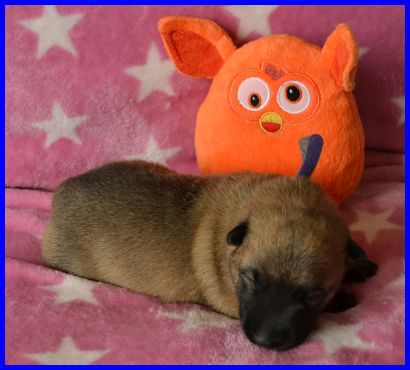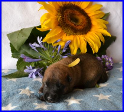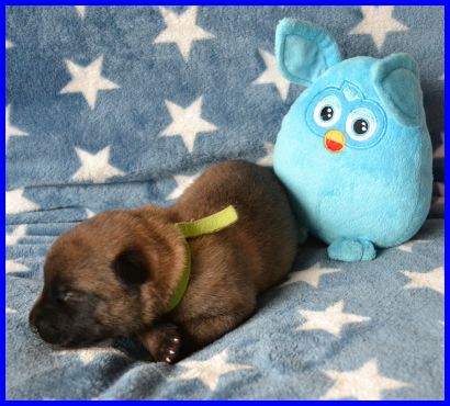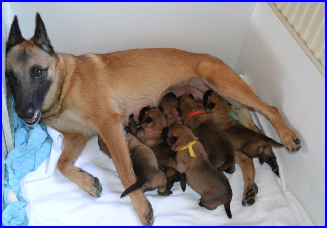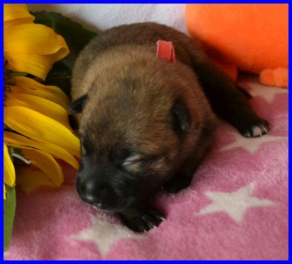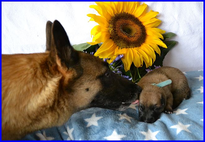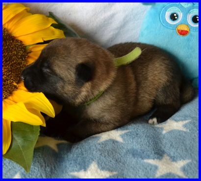 Akela ihre Babys entwickeln sich prächtig. Natürlich verbringen sie die meiste Zeit mit schlafen und trinken, es passiert noch nicht viel in der Wurfkiste. Alle Welpen haben schon am 8. Tag ihr Geburtsgewicht verdoppelt. Auch bei ihrem zweiten Wurf zeigt sich Akela wieder als eine sehr entspannte und souveräne Mutter, macht ihre Arbeit, versorgt die Babys sehr gut, aber dann will sie auch ihre Freizeit haben. Für Akela zählen die drei "S" Sauber, Satt, Schlafen! Das hat sie von ihrer Mama. Avanti war genauso, aber als Tante unschlagbar!