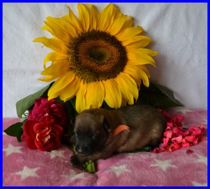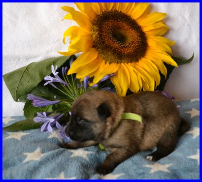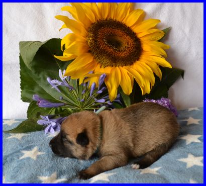 Der dritte Welpe, der erste Rüde, wog nur 3g weniger als der schwerste Welpe, aber jetzt liegt er an vorletzter Stelle, wiegt nur 39g mehr als Frl. Orange. Sein Gewicht zur Zeit: