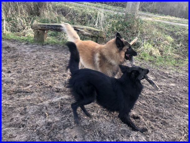 Ein toller Rüde mit einem super Spielverhalten! Vicky durfte den Stock mit tragen, obwohl ich ja eigentlich gegen das Spiel mit Stöcken bin, hier war es mal erlaubt.