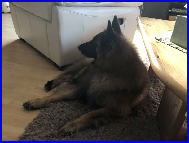 Das allerletzte Foto, wir lassen wieder einen sehr traurigen Digger zurück, am liebsten hätte ich ihn mitgenommen. Ich habe mich zum zweiten Mal verliebt in diesen lieben Kuschelbär! Kaddi, Du hast einen ganz besonderen Rüden! Ich hoffe sehr, dass es wieder eine erfolgreiche Liebeswoche war und wir süße kleine Digger - Farouche - Babys bekommen werden. Und dann wünsche ich mir mindestens ein wunderschönes Mädchen, dass Farouche behalten darf und später vielleicht die nächste Tervueren Zuchthündin in meinem Zwinger wird. In drei Wochen werden wir eine Ultraschalluntersuchung machen lassen, dann wissen wir ob die Verpaarung von Digger und Farouche erfolgreich war. Das Ergebnis werde ich dann hier bekannt geben.