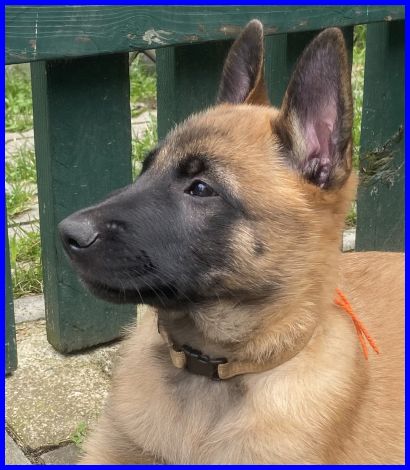Der kleine Quentin ist ein süßer Fratz, immer gut gelaunt mit ganz viel Unsinn im Kopf, ist ein richtiger Sonnenschein, ein kleiner Schelm, der fröhlich und unternehmungslustig sein Welpen Leben genießt. Diese Unbekümmertheit, dieser Frohsinn und die Neugier an allem sind bestimmt super gute Voraussetzungen für Mondioring, die Sportart in der er ausgebildet werden soll. Ich bin sehr gespannt, ob er Freude daran finden wird, und ob er sich dafür eignet.