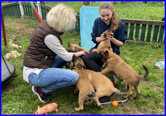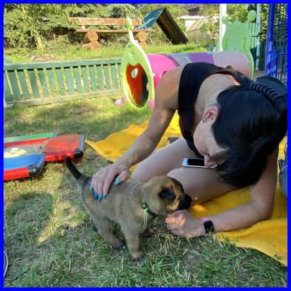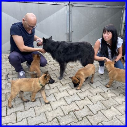 Der erste Besuch bei den Welpen war am 18.06.2021 und obwohl es damals noch nicht feststand, ahnte der kleine Rüde Grün, dass das wohl mal seine Familie wird!