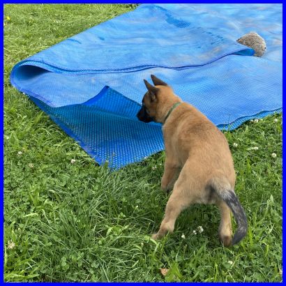 Klar läuft auch Rufus problemlos über die Plane, war für alle Welpen Premiere. |