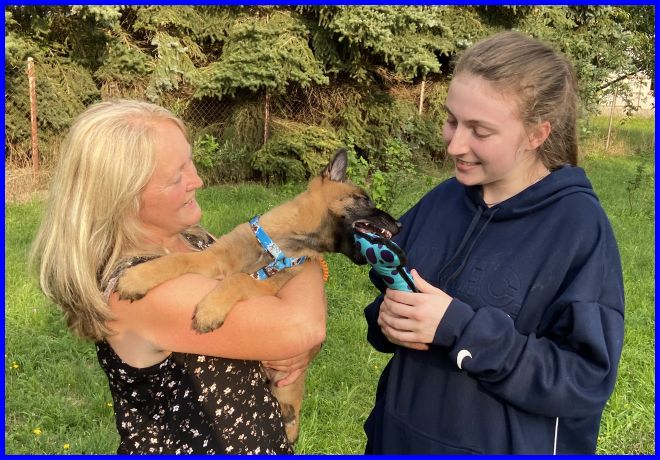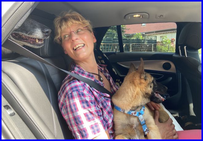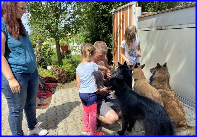 Arco wird abgeholt!! Aber zuerst bekommen meine Mädels alle ein Bestechungsleckerli ;-) Beide Mädels waren absolut sicher im Umgang mit meinen Hunden.