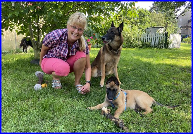 Euer zweiter Besuch war am 03.07.2021, und da sind sie, die zwei Favoriten, Blau oder Schwarz! Beide sind tolle, offene, neugierige kleine Frechdachse, und schön noch dazu. Wer darf mit nach Dortmund ziehen und Mondioring Hund werden??? |