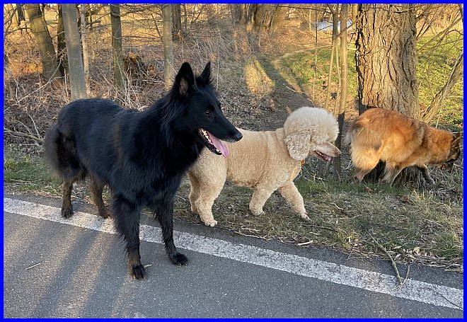 Wir waren mit den Pudeln meiner Tochter spazieren, leider das einzigste Foto mit Vicky und einem Pudel, hier Nadja.