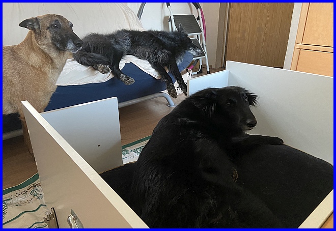 Und die Wurfkiste steht natürlich auch schon seit einigen Tagen vor meinem Bett, ihr Blick ist eindeutig: Ehrlich, ich darf die Babys nicht im Bett bekommen, ich soll HIER liegen???