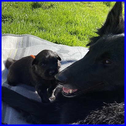 Richtig wohl fühlt sie sich noch nicht, aber das kommt bald. Sie wird das Kindermädchen, darf dann immer mit den Welpen spielen.