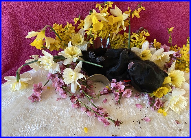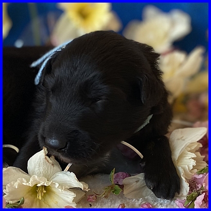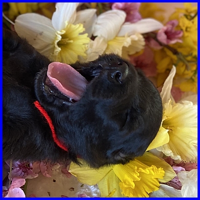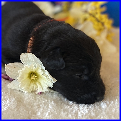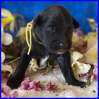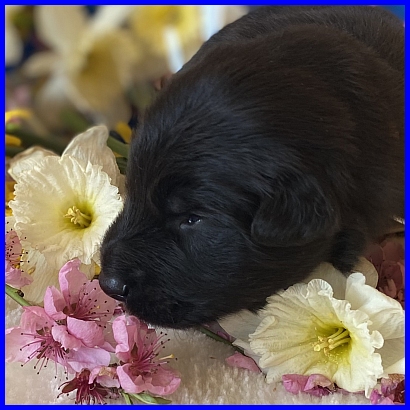 Die Welpen sind zwei Wochen alt, und natürlich gibt es wieder Einzelaufnahmen. Die Fotos sind vom 11.04.2022. Die Fotos zeigen die Babys in der Reihenfolge ihrer Geburt. Es war ein sehr interessantes Fotoshooting, jeder Welpe hat anders auf die neuen Gerüche, die Düfte der verschiedenen Blumen, reagiert. Es war total niedlich anzusehen, der eine wollte am liebsten kosten, der nächste rümpfte das kleine Näschen und wollte wegkriechen, und einer hat sich in den Blumen geräkelt... zuckersüß! Ich finde, die Bilder sind richtig schön geworden. Viel Spaß beim Ansehen der Bilder. Drei Rüden suchen noch "IHRE" Familie.