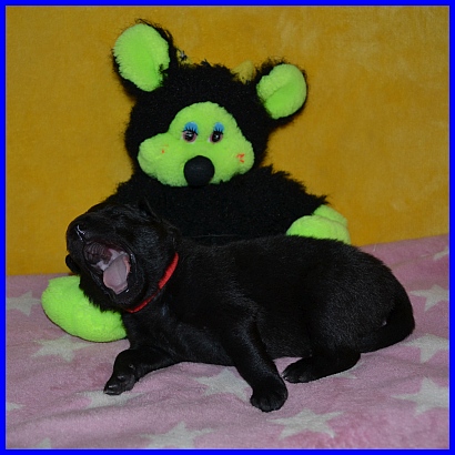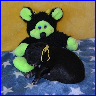 Mr. Grün, die Augen sind schon offen, aber noch sehen die Welpen alles recht verschwommen.