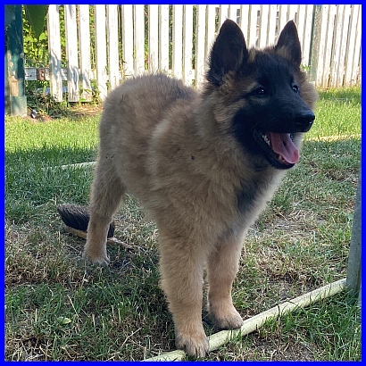 Dieses Bild ist vom 07.06.22, hier sieht Raya aus wie ihre Mama, zum Verlieben schön!!! Auch die nachfolgenden Fotos sind vom 07.06.22, Raya ist 10 Wochen alt und hat wie ihre Geschwister einen guten Spiel-und Beutetrieb. |