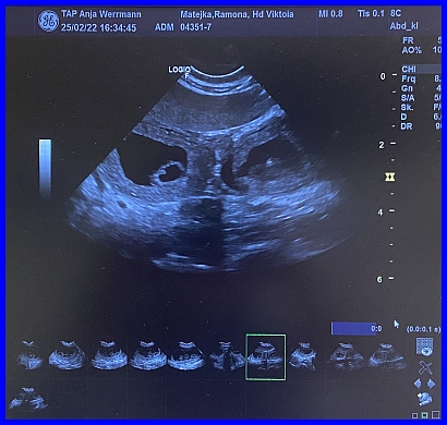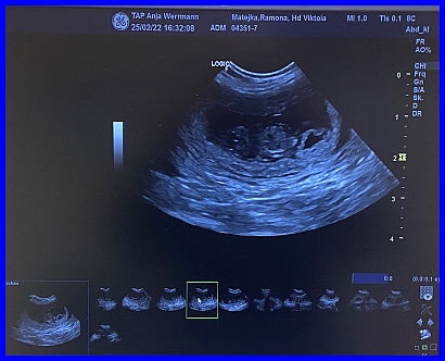 Es ist der 29. Tag der Trächtigkeit. Viktoria fand es ziemlich blöd auf dem Tisch, das sieht man ihr auch deutlich an.