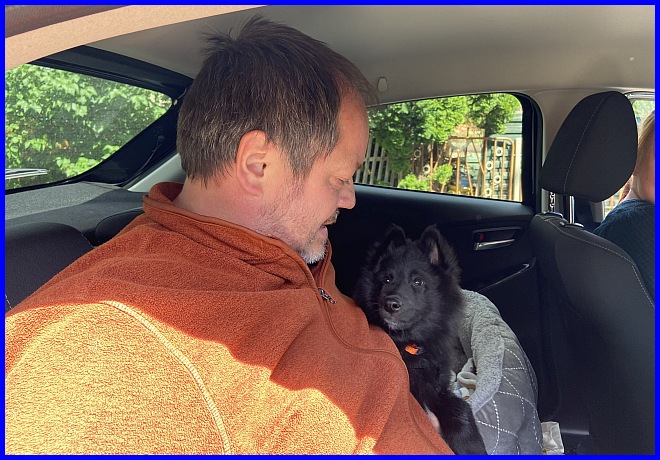 Ja, kleiner Mann, Du kommst mit zu uns! Also ich muss sagen, BEIDE sitzen total zufrieden im Auto, Rembrandt ist gerne ausgezogen.