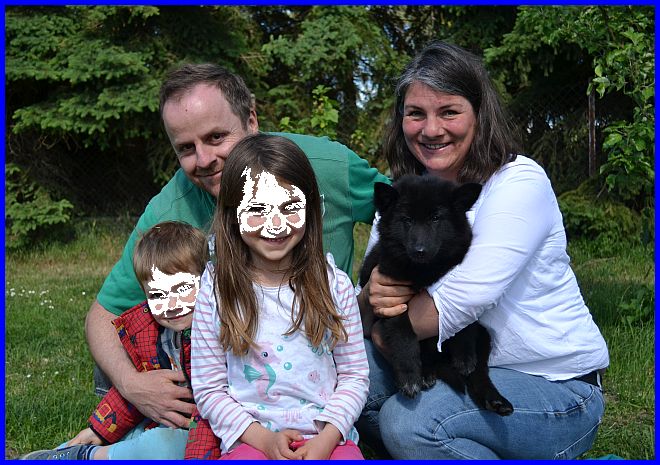 Das Abschiedsfoto mit Loki und seiner neuen Familie. Das "in die Kamera schauen" hätte ich vorher wohl bisschen üben müssen :-)