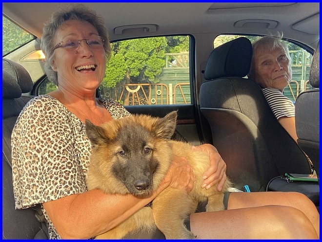 Hier sind ein paar Momentaufnahmen vom Start in ihr neues Leben, kennen gelernt haben meine Knirpse ihre neuen Familien alle schon paar Wochen vor ihrem Auszug, nur die Entscheidung, wer zu wem darf, die ist erst sehr spät gefallen. Die Knirpse sind inzwischen schon 7Monate bei ihren neuen Familien, und alle sind mega glücklich, haben mir schon Fotos und Videos geschickt. Besonders sehr freut es mich, dass einige Welpen ausgestellt werden, und ich sie wieder sehen werde. Hier stelle ich erst einmal nur die neuen Familien vor. In den nächsten Tagen werde ich von jedem einzelnen Welpen ein kleines Portrait, mit Aufnahmen aus dem neuen Zuhause, in die Newstime 2023 stellen.