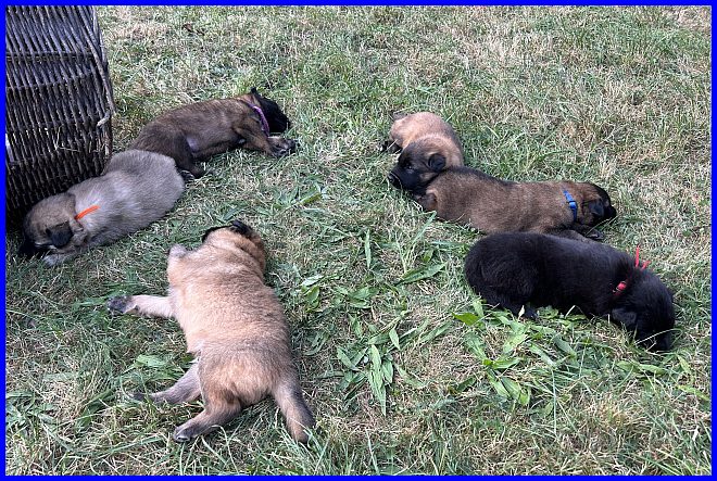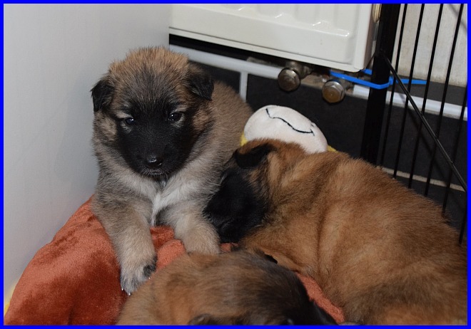 Die Welpen sind inzwischen auch schon in ihren kleinen Welpenauslauf umgezogen, haben sich zum Schlafen aber am liebsten in diese kleine Ecke verzogen.