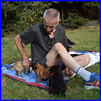 Alle Welpen sind schnüffeln ganz neugierig an Micha! |