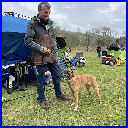 Nun waren die Hündinnen der offenen Klasse dran, hier ist Jens mit Ola. |