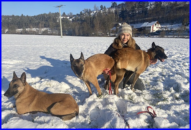 Fast alle Welpen wurden erfolgreich ausgestellt, Quentin Tarantino ist Dt.Jug.Champion und Luxemburger Jug.Champion. Das einzige Mädchen im Wurf, Quintana, habe ich behalten. Sie soll später Akela ihre Nachfolgerin werden, aber nur wenn sie alle Voraussetzungen für die Zuchtzulassung erfüllt. Ich war natürlich mit ihr auch auf diversen Ausstellungen, und sie ist ebenfalls Dt. Jugendchampion. Beide, Quentin und auch Quintana haben im Herbst 2022 die Begleithund Prüfung abgelegt, arbeiten gut und gerne auf dem Hundeplatz. Auch mit den anderen vier Brüdern wird Hundesport gemacht, und dieses Frühjahr werden sie sicherlich auch die Begleithund Prüfung ablegen. Aber was viel wichtiger ist, es gibt bisher keine gesundheitlichen Probleme, alle gesund und voll überschäumender Energie und Lebensfreude! Und genau so wichtig, alle sind absolut freundliche liebe Familienhunde, die das Leben mit ihren Familien genießen, ob nun Aktion oder Chillen angesagt ist, sie sind für jede Schandtat bereit!!!.