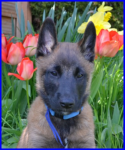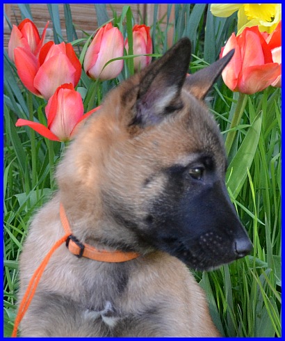 Der letzte Welpe, und die Tulpen haben es überlebt :-)