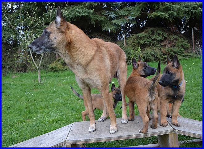 Und zum Abschluss noch mal alle vier Welpen mit Mama auf den Welpensteg für ein schönes Bild! Zwei sind ja schon da...