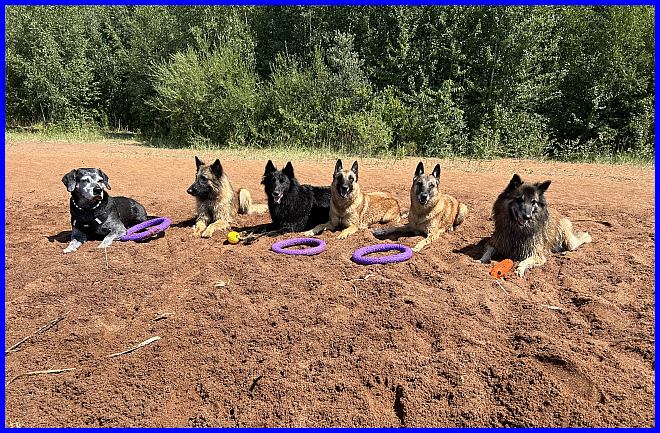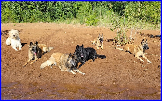 Dieser Sommer war bzw. ist richtig heiß, wir waren nicht mehr spazieren, wir sind nur noch schwimmen gegangen. Meine Mädels und ein Hund, den wir am See getroffen haben. Leider habe ich nur Videos gemacht, kein einziges Foto. Quintana liegt in der Mitte, zwischen meiner Gönihündin Viktoria und ihre Mama Malidame Akela.