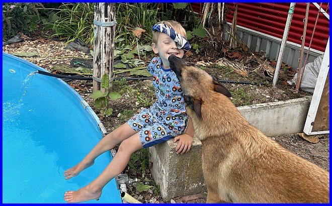 Meine Enkelkinder waren wieder zu Besuch, Quintana liebt sie richtig sehr!